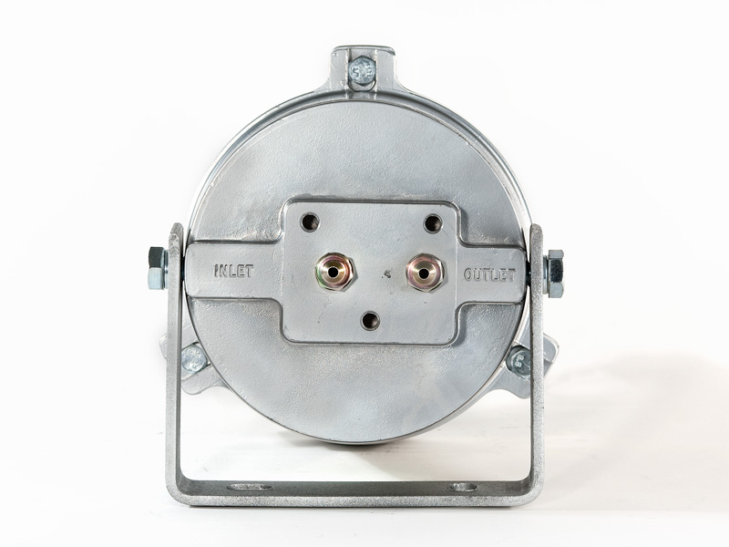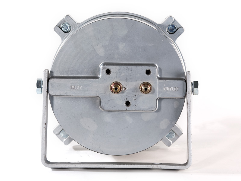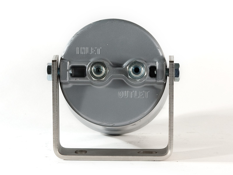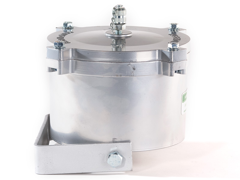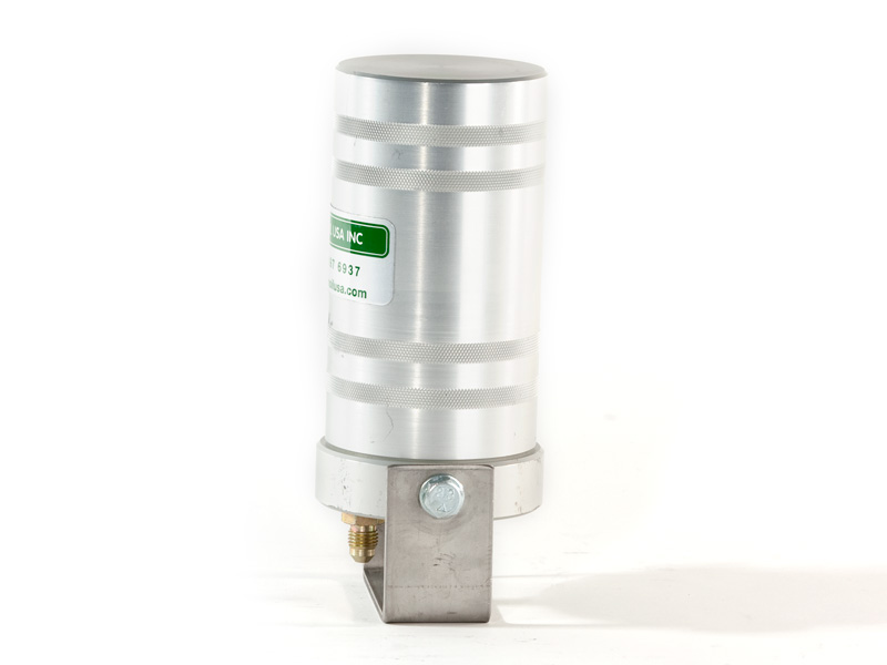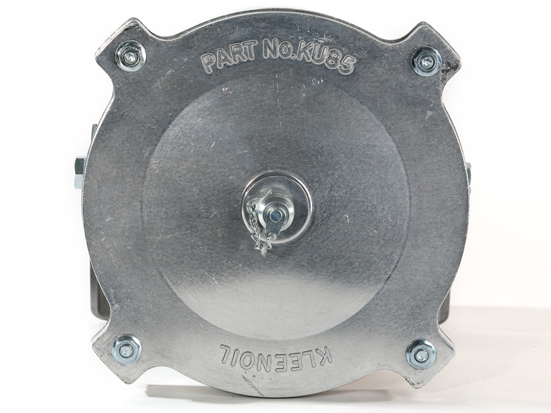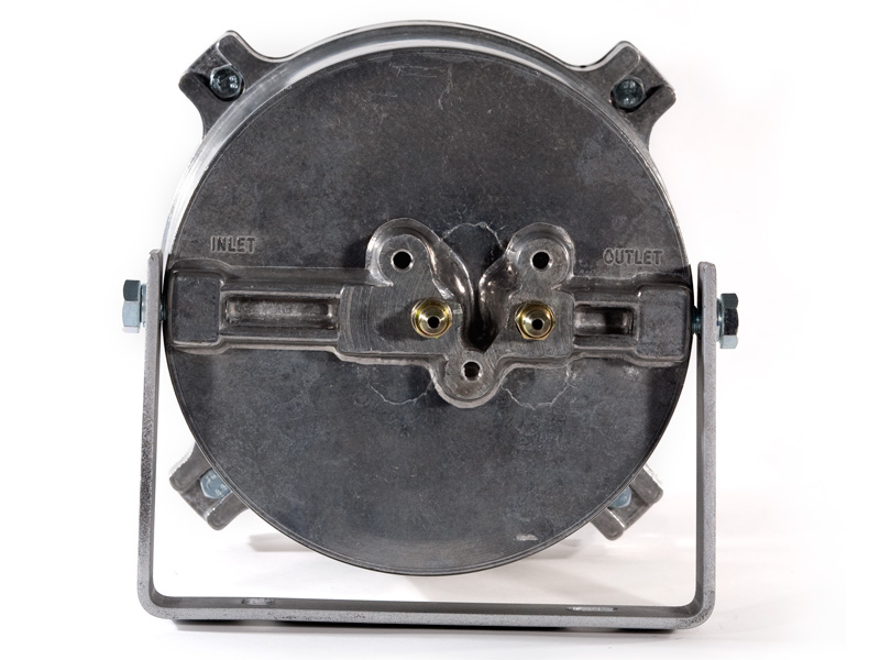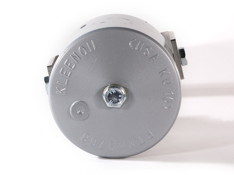 The Kleenoil USA filtration unit is made of cast aluminum with a galvanized steel mounting bracket. There are five basic sizes, which are installed according to the applications table below. It is connected to the engine lubricating oil circulating system in a bypass loop using high pressure braided hose and fittings to SAE standards.